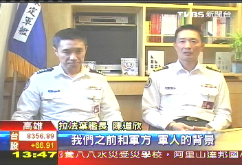 拉法葉艦長(zhǎng)陳道欣:“我們之前和軍方、軍人的背景,可以說(shuō)一點(diǎn)淵源都沒(méi),但是道輝首先加入“中正預(yù)!薄!