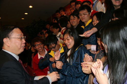 他表示,青年學生是社會的未來,希望兩岸學生從民族尊嚴和振興中華的角度,實踐和推動兩岸的和平發(fā)展,同時鼓勵臺灣醫(yī)學生到基層實習、鍛煉,培養(yǎng)良好的職業(yè)道德。會見結(jié)束后,黃潔夫與臺灣醫(yī)學生們合影留念。
