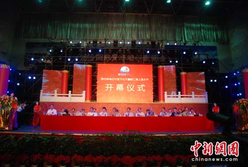 中新網(wǎng)石獅6月17日電(林永傳 郭斌)16日是中國傳統(tǒng)端午佳節(jié),也是閩南所稱的“五月節(jié)”。當(dāng)晚,第四屆閩臺對渡文化節(jié)暨蚶江海上潑水節(jié)開幕式在福建石獅市體育館舉行。