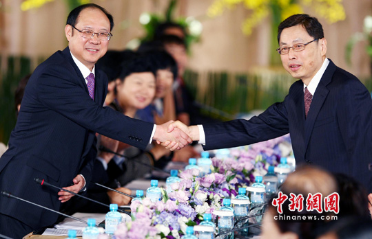 中新網(wǎng)臺(tái)北6月24日電 為籌備海協(xié)會(huì)與;鶗(huì)第五次會(huì)談,海協(xié)會(huì)常務(wù)副會(huì)長鄭立中與海基會(huì)副董事長兼秘書長高孔廉24日上午9點(diǎn)在臺(tái)北圓山大飯店舉行預(yù)備性磋商。