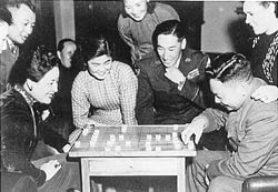 下棋不僅是蔣家生活的娛樂,蔣介石還以之作為外交聯(lián)誼活動(dòng)。1947年7月至9月,蔣在牯嶺避暑期間,美國(guó)杜魯門總統(tǒng)特使馬歇爾(George Catlett Marshall)六上牯嶺,協(xié)商調(diào)處國(guó)共問題。馬氏夫婦受到蔣介石與夫人熱情款待,游覽風(fēng)景名勝,也留下弈棋的記錄及畫面。蔣介石日記中多日載及。