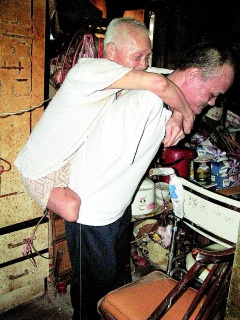 中新網(wǎng)6月15日電 據(jù)臺灣《聯(lián)合報》報道,苗栗市一對身體殘缺的父子相依為命,互為對方手腳;他們一個沒有雙手、一個沒有雙腳。