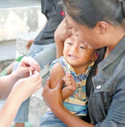 中新網(wǎng)11月2日電 臺(tái)灣島內(nèi)甲型H1N1型流感疫苗1日在6個(gè)縣市的14個(gè)臺(tái)風(fēng)“莫拉克”災(zāi)民收容中心開打,這是島內(nèi)有史以來最大規(guī)模的預(yù)防接種工作,各地衛(wèi)生單位都嚴(yán)陣以待。據(jù)統(tǒng)計(jì),昨日共有884位災(zāi)民接種,雖較預(yù)期人數(shù)少,但和季節(jié)流感相比,民眾反應(yīng)已算踴躍。