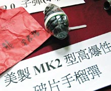 落網(wǎng)的30歲嫌犯李坤龍供稱,這批軍火是他向別人買二手車時,原車主留下來的,對于李嫌的說詞,警方不但不采信,并向其訓(xùn)誡說,“買車附贈手榴彈!你當我三歲小孩啊!”