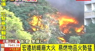 臺(tái)南縣一紡織廠發(fā)生大火,初估損失上億。圖片來(lái)源:臺(tái)灣TVBS
