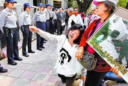 中新網(wǎng)3月25日電 據(jù)臺(tái)灣媒體報(bào)道,臺(tái)空軍一中士蔡學(xué)良于前年五月九日在靶場射擊時(shí)遭槍傷后不治身亡,被判定是自殺,蔡母尤瑞敏率親屬到空軍司令部前拉白布條抗議,痛批空軍“草菅人命、黑箱作業(yè)、毀滅證據(jù)”,蔡母倒地痛哭:“司令,我給你跪,拜托你給我們一個(gè)真相,不要再敷衍了!”隨后并向“監(jiān)委”趙昌平陳情,趙允諾調(diào)查,近期內(nèi)將約談相關(guān)人員。