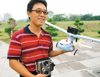 他表示,只要將小型的數(shù)位相機(jī)固定在遙控飛機(jī)機(jī)首,按下連拍模式后讓飛機(jī)升空“霰彈打鳥”,1次上空連拍數(shù)百?gòu)埾聛?lái),至少可以挑到幾張好畫面。