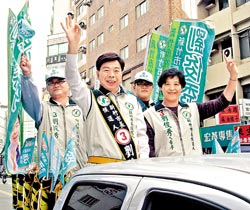 國(guó)民黨桃園縣長(zhǎng)候選人吳志揚(yáng),昨日把重心放在桃園、蘆竹等地,盡管飄著細(xì)雨,仍不減支持者的熱情,在力行市場(chǎng)內(nèi)一一與攤商和菜籃族握手拜票,又與“立委”周守訓(xùn)、多位國(guó)民黨中常委,桃園市長(zhǎng)候選人蘇家明、多位縣議員候選人,騎乘自行車(chē)向選民拜票。