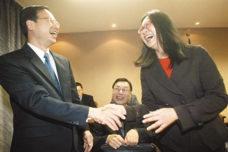 中新網(wǎng)12月17日電 第四次兩岸兩會(huì)領(lǐng)導(dǎo)人商談即將登場,;鶗(huì)董事長江丙坤日前接受臺(tái)灣《聯(lián)合晚報(bào)》專訪。對(duì)于在野黨發(fā)動(dòng)群眾抗議,江丙坤憂心表示,如果繼續(xù)內(nèi)耗下去,他擔(dān)心臺(tái)灣是否會(huì)變成菲律賓第二,他期待朝野坐下來,好好地談一談,大陸的崛起、全球化與全球暖化以及區(qū)域整合、韓國的競爭等議題。