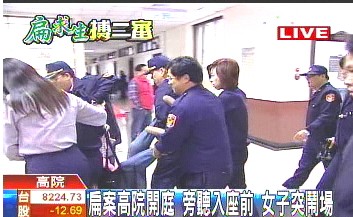 另據(jù)臺(tái)灣TVBS報(bào)道,開庭前,庭外一名女子試圖闖入法庭旁聽遭到警方制止并抬出庭外,該名女子激動(dòng)喊叫,似乎相當(dāng)關(guān)心陳水扁在法庭內(nèi)的表現(xiàn)。