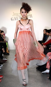 中新網(wǎng)5月7日電 據(jù)“中央社”報(bào)道,2010春夏最具性感話題的時(shí)尚秀,絕對(duì)非巴黎鬼才設(shè)計(jì)師Jean Paul Gaultier(高堤耶)莫屬,而臺(tái)灣的服裝秀則是由名模林葦茹穿上本季設(shè)計(jì)精髓的“飛彈尖錐胸罩”挑逗登場(chǎng)。