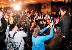 記者會(huì)上,SONY播小胖的歷程VCR,他也高唱成名曲〈I Will Always Love You〉,看到臺(tái)下成群結(jié)隊(duì)的粉絲,拿著“小胖”、“加油”的牌子,他突然哽咽:“謝謝你們,我一定會(huì)加油,不辜負(fù)大家的期望!彪S即拿起手帕拭淚,笑稱:“我鼻酸,感覺(jué)很激動(dòng),淚水混著汗水掉下來(lái)了。”大陸SONY歌手李易峰和蘇醒,分別吆喝自己粉絲,到場(chǎng)替師弟小胖加油打氣。