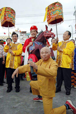 中新網10月29日電 國民黨參選人馬英九今天走訪臺灣歌仔戲發(fā)源地宜蘭縣員山鄉(xiāng)時,除了詳細聽取當?shù)厝耸拷庹f典故之外,還穿上戲服表演了一段“狀元游街”。