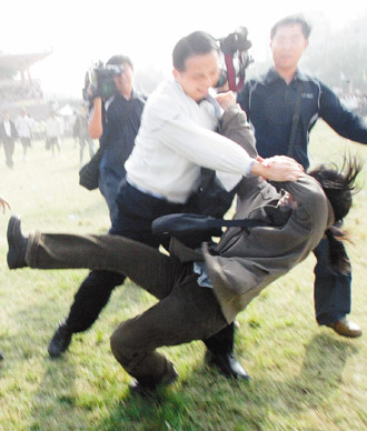 中新網(wǎng)11月12日電 國(guó)民黨“立院”黨團(tuán)12日批評(píng)說(shuō):陳水扁被嗆,“國(guó)安局”隨扈竟將手無(wú)寸鐵陳情學(xué)生“過(guò)肩摔”,不傾聽(tīng)人民聲音的陳水扁卻怕民眾。“立委”洪秀柱表示,隨扈這一摔,不僅摔傷學(xué)生、人民的心,也摔掉人民對(duì)陳水扁、對(duì)當(dāng)局僅存的一絲尊重。