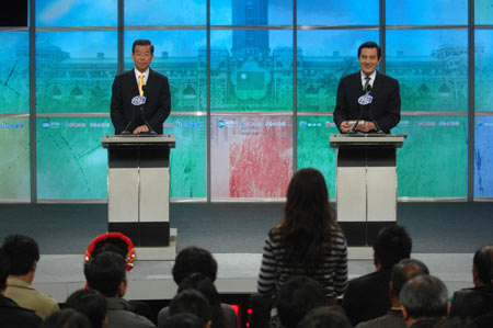 中新網(wǎng)2月24日電 二00八年臺(tái)灣地區(qū)領(lǐng)導(dǎo)人選舉第一場(chǎng)電視辯論會(huì)今天下午結(jié)束,馬英九與謝長(zhǎng)廷在回答民眾最后一個(gè)問(wèn)題時(shí),不得不互相夸起來(lái)。