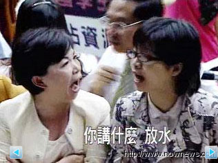 報道說,會議主席宣布休息協(xié)商,卻反而制造了藍綠雙方口水大戰(zhàn)的絕佳舞臺。占人數(shù)優(yōu)勢的藍營決定按原定議程審理教育部門預算,沖突就這么發(fā)生。兩個星期前是打巴掌,這回拉扯近乎打群架,“立法院”儼然成為女人的戰(zhàn)場。