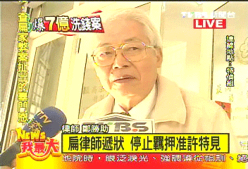 陳水扁委任律師鄭勝助來到臺(tái)灣特偵組遞申請(qǐng)狀,希望特偵組能依循嘉義縣長陳明文模式,讓陳水扁能夠特見他的家人。圖片來源:臺(tái)灣TVBS