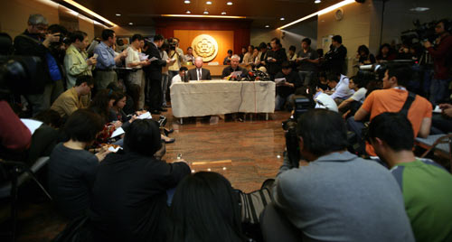 各方傳媒早已眾集在“法務(wù)部”一樓大廳等候世紀(jì)大案的起訴書(shū)。據(jù)悉,起訴書(shū)正文約有209頁(yè)、59頁(yè)表格及13頁(yè)的圖,合計(jì)約281頁(yè)。