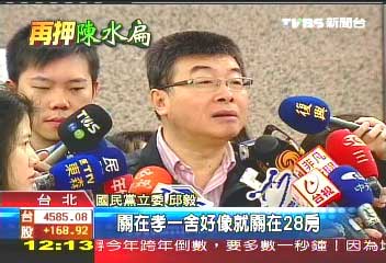 中新網(wǎng)12月30日電 據(jù)臺灣TVBS報道,陳水扁二度遭收押,國民黨“立委”邱毅說陳水扁遭收押的孝一舍28房,跟他上次被關(guān)的房舍是同一間,兩人意外成了前后任室友,邱毅諷刺地說這就是現(xiàn)世報。