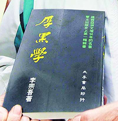 《厚黑學(xué)》主要是論述中國(guó)歷史上英雄豪杰之所以成功,無(wú)非“面厚、心黑”。國(guó)民黨“立委”得知扁收到《厚黑學(xué)》后多所嘲諷,黨團(tuán)書記長(zhǎng)張碩文說:“阿扁其實(shí)就是最好的《厚黑學(xué)》,前無(wú)古人、后無(wú)來(lái)者,他是最好的活教材。”