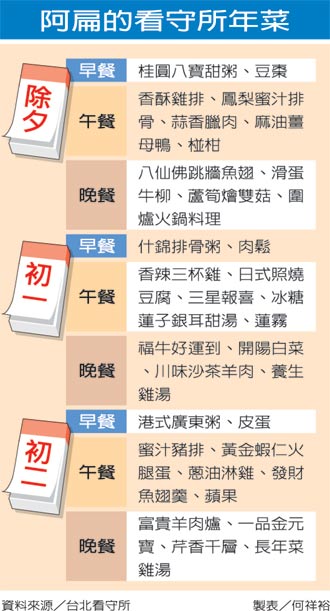 看守所節(jié)前還有一系列活動(dòng),包括電話懇親、歌舞劇演出,還給三千多名受刑人和被告分送全臺(tái)灣統(tǒng)一發(fā)放的消費(fèi)券大紅包。只不過(guò),有資格打電話的人只限定在去年11月1日前入所者,扁在12月30日入所,不符資格,無(wú)法打電話給吳淑珍及子女。