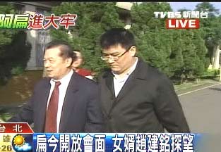 中新網(wǎng)2月1日電 據(jù)臺(tái)灣TVBS報(bào)道,陳水扁女兒陳幸妤31日只身前往美國(guó),今天(1日)上午陳水扁女婿趙建銘到看守所探視陳水扁,不過(guò)對(duì)于妻子出境所為何事,趙建銘面對(duì)提問(wèn),則沒(méi)有回應(yīng)。