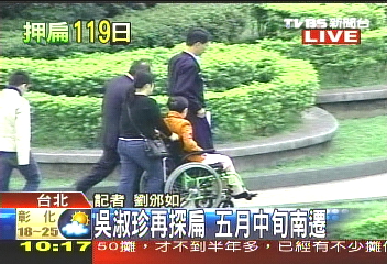 中新網(wǎng)4月27日電 據(jù)臺(tái)灣TVBS報(bào)道,陳水扁妻子吳淑珍傳出在5月20日以前,就要南遷到高雄新家,今天(27日)兒子陳致中也特別北上,和吳淑珍一起探望陳水扁。