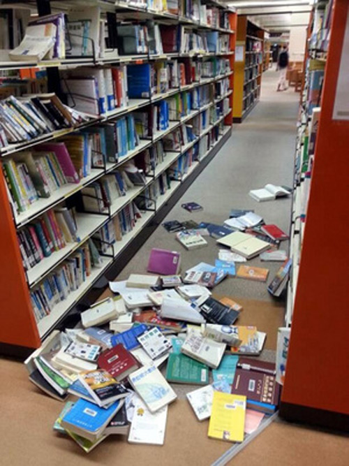 臺(tái)灣南投6.7級(jí)地震 圖書館書籍掉落一地