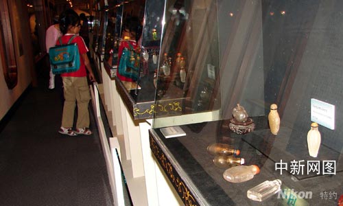 僅僅幾十平方的長(zhǎng)廊,卻從容地?cái)[放著二百多件的展品,在這里,能看到翡翠、玉石、瓷器、水晶、竹、牙,也能欣賞到書(shū)畫(huà)、雕刻、釉彩、銅胎等等,位于臺(tái)北市南海路的歷史博物館二樓,八月二十九日下午開(kāi)始的“臺(tái)北鼻煙壺珍品展”,在展示鼻煙壺之精美的同時(shí), 也讓參觀者領(lǐng)略了中華傳統(tǒng)藝術(shù)的博大和豐富內(nèi)涵。
