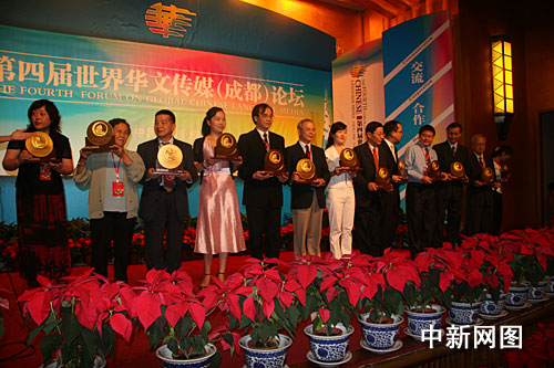 [主持人]: 獲得傳媒機(jī)構(gòu)貢獻(xiàn)獎(jiǎng)的有:美國(guó)僑報(bào)、新加坡聯(lián)合早報(bào)、香港鳳凰衛(wèi)視