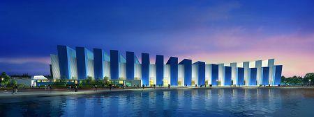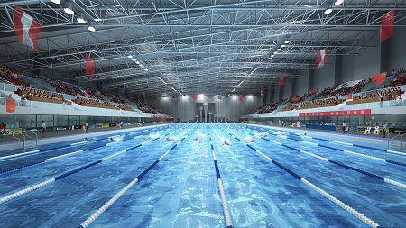 廣東奧林匹克體育中心游泳跳水館是亞運(yùn)會游泳跳水項(xiàng)目的主要比賽場館,將舉行游泳、跳水和現(xiàn)代五項(xiàng)游泳比賽及亞殘會游泳比賽,賽后將作為國家南方訓(xùn)練基地,滿足國家隊(duì)冬訓(xùn)及亞運(yùn)會之后舉行重大賽事的要求。該館總坐席數(shù)為4584座,分別設(shè)置了標(biāo)準(zhǔn)比賽池(含移動池岸)、訓(xùn)練池、跳水池。其設(shè)計力求與原基地環(huán)境相協(xié)調(diào),總體布局上延續(xù)了奧林匹克體育中心的總體規(guī)劃設(shè)計理念,游泳館主體造型采用雙色螺旋流動造型,主體建筑白色和藍(lán)色相間,既巧妙地隱喻了廣州“云山珠水”的城市地理特征,又是對主體育場“飄帶”曲線的延續(xù)。同時通過相互穿插流動造型,結(jié)合建筑朝向,很好的滿足了建筑內(nèi)部空間高度、采光通風(fēng)、建筑節(jié)能以及合理布置設(shè)備管道的需求。