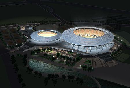 網(wǎng)球中心由一棟可容納10000人的開敞式網(wǎng)球主比賽館,一個(gè)可容納2000觀眾的副場和13塊室外標(biāo)準(zhǔn)網(wǎng)球場以及相關(guān)附屬用房組成?偨ㄖ娣e20381平方米,鋼筋混凝土結(jié)構(gòu),座位12000個(gè),占地面積56398.66平方米。其中:主館、副館為甲級(jí)體育建筑,地上三層,采用鋼網(wǎng)架輕型屋面板屋蓋結(jié)構(gòu),座位10000個(gè);副場地上一層,座位2000個(gè)。