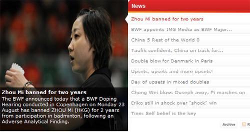 圖為國際羽聯(lián)在其官網(wǎng)上公布對周蜜的處罰