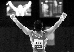 率隊(duì)出征荷蘭世錦賽前,中國(guó)體操男隊(duì)隊(duì)長(zhǎng)陳一冰高調(diào)宣稱,要拿兩枚金牌送給女友何雯娜,這位信守承諾的體操名將在昨晚的男子吊環(huán)比賽中以15.900分力壓群雄,拿到了個(gè)人的第三個(gè)世錦賽吊環(huán)冠軍,繼男團(tuán)冠軍后再奪一金,兌現(xiàn)了出征時(shí)對(duì)何雯娜的承諾。