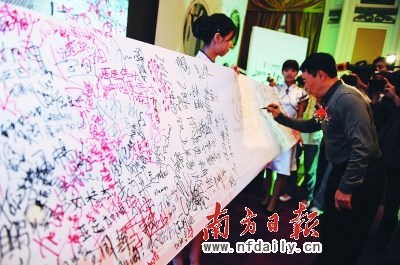 南方日報訊(記者/劉靜陳潔娜通訊員/葉子川)激情亞運(yùn),溫馨地鐵。昨天下午,廣州地鐵舉行了“2010五羊喜游記”成果發(fā)布會暨“亞運(yùn)萬人助威卷軸”贈送儀式,把在地鐵站內(nèi)收集的市民簽名與祝福轉(zhuǎn)呈亞運(yùn)會組委會,表達(dá)市民支持亞運(yùn),祝福亞運(yùn)的美好心愿。