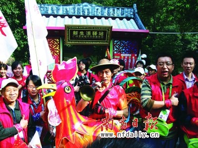 南方日報訊(記者/雷雨實(shí)習(xí)生/沈潔華通訊員/周丹丹黃靜雯)“雞公欖,有辣有唔辣!鼻宕嗟膯顓嚷暋⒂糜布埰丸F絲扎成的公雞套籠吸引市民紛紛圍觀拍照。昨日,首批“傳說廣州亞運(yùn)特使”上崗,在越秀公園宣講嶺南文化。