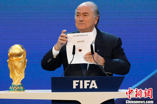 中新網12月3日電 綜合報道 北京時間12月2日23時38分(當地時間16時38分),2018年與2022年世界杯申辦投票結果在瑞士蘇黎世會展中心揭曉。國際足聯主席布拉特宣布:俄羅斯獲得2018年世界杯主辦權,卡塔爾獲得2022年世界杯主辦權。