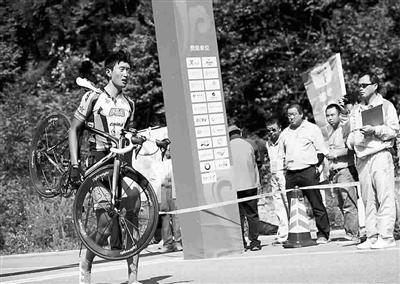 昨天在本溪進(jìn)行的第十二屆全運(yùn)會(huì)自行車(chē)男子公路個(gè)人賽中,解放軍隊(duì)選手吳佩倫在臨近終點(diǎn)沖刺時(shí)不慎摔倒(見(jiàn)上圖),但是他并未因此放棄比賽,而是扛著自行車(chē)走過(guò)終點(diǎn)線(xiàn)(見(jiàn)上圖),最終以4小時(shí)42分14秒的成績(jī)位列第26名。吳佩倫的行為,生動(dòng)體現(xiàn)了永不言棄的體育精神,賽后他說(shuō):“我到這里,不是來(lái)聽(tīng)發(fā)令槍的,而是要沖過(guò)終點(diǎn)線(xiàn)的!