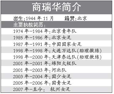商瑞華是中國(guó)女子足壇的元老級(jí)人物,中國(guó)女足運(yùn)動(dòng)開(kāi)端之后的優(yōu)秀球員均在其手下效力過(guò),包括李秀馥、吳偉英、劉愛(ài)玲、溫莉蓉、孫雯等人。雖然在率隊(duì)參加的1991年首屆女足世界杯賽上,中國(guó)女足因負(fù)于瑞典隊(duì)而無(wú)緣4強(qiáng),但這支國(guó)家隊(duì)奠定了中國(guó)女足在1996年、1999年兩奪世界亞軍的基礎(chǔ)。離開(kāi)主教練崗位后,商瑞華曾先后以助理教練的身份執(zhí)教男足的大連萬(wàn)達(dá)隊(duì)、天津泰達(dá)隊(duì),擔(dān)任過(guò)四川綿陽(yáng)隊(duì)主教練,隨后又任職河北女足、中國(guó)女足青年隊(duì),目前在杭州女足任教。