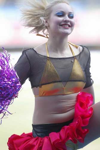 大連大概不懂不能搶戲份的道理,把首輪戰(zhàn)也搞得像春晚一樣很紅很喜慶,洋妞助威團的獻藝大有喧賓奪主之意。握有中超開幕式導演聘書的或許很不屑這草臺班子,但我作為一名正直的觀眾卻很喜歡這至少握上去更實實在在的一圈腰間贅肉——哈,小腹婆,很可愛!
