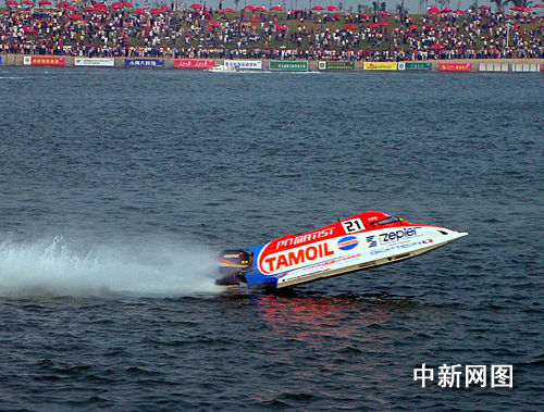 本次深圳大獎賽的賽事規(guī)定,決賽中規(guī)定賽程為跑完賽道七十圈。在昨天比賽中獲得桿位的二十一號——“九冠王”高迪奧·卡佩里尼,從發(fā)艇即牢牢掌握大局,一路領先,拐彎處漂亮的小角度弧線引來觀眾陣陣驚呼。