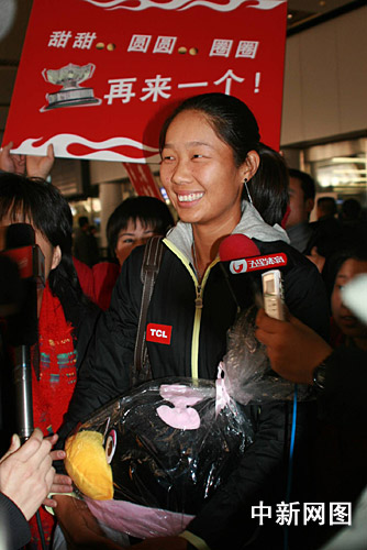中新網(wǎng)北京1月29日電(記者 沈晨)澳網(wǎng)公開賽混雙冠軍孫甜甜昨日深夜抵達北京。雖然時至深夜,但她在首都國際機場依然受到了國家體育總局網(wǎng)球運動管理中心相關(guān)領(lǐng)導和澳網(wǎng)助威團球迷們的熱烈歡迎。