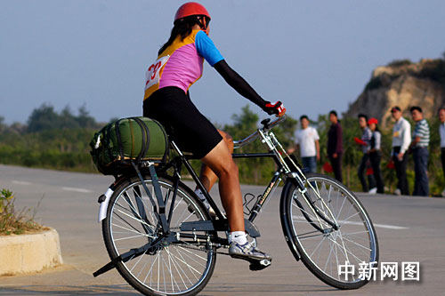 中新網10月28日電 十月二十八日下午,第六屆全國農運會“自行車載重”女子四十公斤二十公里比賽在福建惠安沿海大通道進行,吸引了眾多當地市民觀戰(zhàn)。
