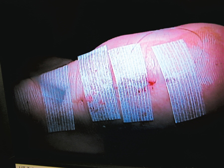 劉翔手術(shù)的創(chuàng)口為2.5厘米,手術(shù)共取出了3個鈣化物質(zhì)和1個骨刺。 圖片來源:華西都市報