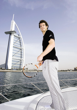 在阿聯(lián)酋的阿布扎比,穆雷先后擊敗了世界第十的布雷克、世界第二的費(fèi)德勒和世界第一的納達(dá)爾,令人吃驚地捧起2009年網(wǎng)壇的第一座獎(jiǎng)杯。這似乎預(yù)示著2009年世界網(wǎng)壇三甲行列有可能重新“洗牌”。而昨日,在ATP迪拜冠軍賽開(kāi)賽前夕,穆雷在迪拜的七星級(jí)酒店帆船酒店前拍起了寫(xiě)真,阿聯(lián)酋這塊穆雷的福地,會(huì)不會(huì)再次帶給他好運(yùn)氣呢?