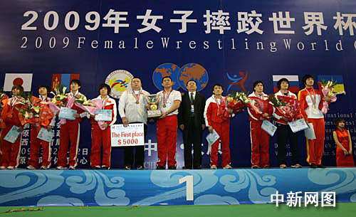中新網(wǎng)3月22日電(張云)今日晚間,在太原市濱河體育中心進行的二00九世界女子摔跤錦標賽(團體賽)的決賽中,中國女隊不負眾望,以五比二的戰(zhàn)績?nèi)偌幽么箨,實現(xiàn)女子摔跤世界杯三連霸。加拿大隊獲得第二名,第三名由日本隊奪取,烏克蘭隊取德第四名成績。