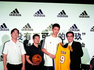 今天上午,阿迪達斯在其全球品牌中心與素有“全能后衛(wèi)”之稱的中國籃球運動員孫悅舉行了簽約新聞發(fā)布會。孫悅下周即將出征NBA,此番加盟阿迪達斯為其踏上國際化征程注入了強心劑。孫悅的加入,令阿迪達斯籃球明星隊伍一再擴大。孫悅在湖人隊的號碼是9號,阿迪達斯也特意選取9月9日9時9分作為簽約發(fā)布會的時間,并以“沒有不可能的‘玖’”作為發(fā)布會主題來強調(diào)此次合作的重要意義。作為入選NBA的第一個打外線位置的中國球員,孫悅在NBA聯(lián)盟和湖人隊中將經(jīng)歷更多的磨練。
