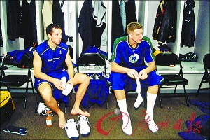 反正在賽前,你絕對(duì)見(jiàn)不到更衣室里人員扎堆的情況。賽場(chǎng)上練完投籃的人,還會(huì)跑到更衣室練點(diǎn)別的;在更衣室里按摩的人,弄完之后也會(huì)跑到賽場(chǎng)上再練會(huì)。而且,大家練習(xí)的時(shí)間也不一樣。有的人練得早,有的人出來(lái)得晚,在這樣的情況下,你要看到球員聊天說(shuō)話(huà),實(shí)在不是一件容易的事情。一般也就一兩個(gè)球員碰到一起,換衣服的時(shí)候、吃東西的時(shí)候,才會(huì)相互聊上兩句。要想在賽前采訪(fǎng)球員,除了等待,還得看運(yùn)氣。