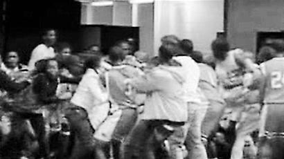 據(jù)《今日美國》報道,這起事件發(fā)生在蒙哥馬利市的阿拉巴馬州立大學籃球場內,當時進行比賽的雙方是卡文中學和山谷中學籃球隊。在第四節(jié)比賽僅剩6分23秒時,山谷中學的恩里克在一次防守時推搡對方中鋒約翰遜犯規(guī),約翰遜立即回以一記老拳。見勢不妙的兩隊替補隊員也沖上場來,場面隨即變得不可收拾。