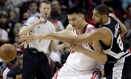 本場比賽,姚明拿下18分11籃板,阿泰斯特貢獻(xiàn)了21分9個籃板,布魯克斯砍下18分,斯科拉也得到10分7籃板。馬刺方面,帕克砍下全場最高的28分8次助攻,老將芬利貢獻(xiàn)17分,鄧肯得到15分12籃板。